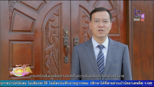 1月3日,驻清迈总领馆与泰国国家电视台泰北频道(NBT)联合举办电视专题访谈《中泰携手推动生态环境保护》。陈海平总领事接受电视采访,谈中泰环保合作积极意义和前景。